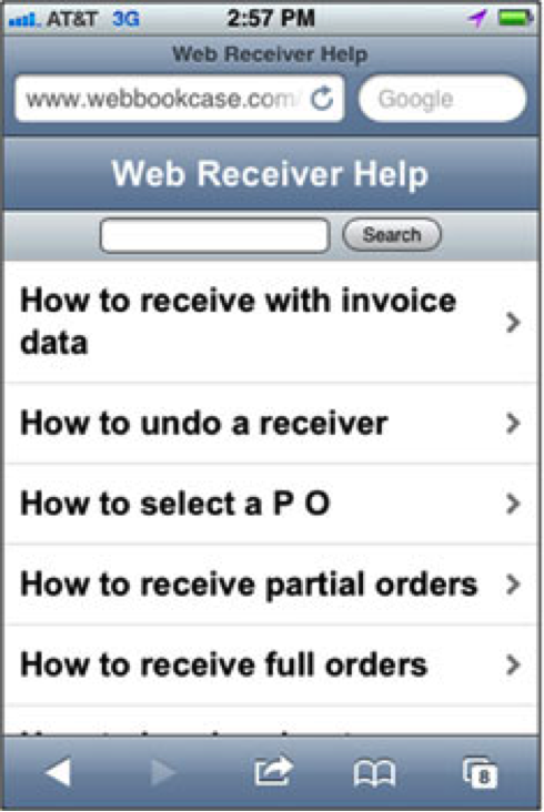 MadCap Flare – Come saprete, MadCap Flare è normalmente utilizzato per sviluppare WebHelp e contenuti per un output da una singola fonte. Tuttavia, questo programma può anche essere usato per sviluppare informazione mobile di supporto alla prestazione. Flare possiede un'opzione per sviluppare WebHelp per dispositivi mobili, che può essere facilmente modificata per farla sembrare e funzionare come un'applicazione di assistenza di primo livello. Per farlo, occorre cambiare la "home" page così che i temi di tale applicazione appaiano immediatamente quando si accede per la prima volta all'applicazione. (Alla fine di questo articolo è possibile trovare un link con le istruzioni). Ecco un esempio di come appare questo tipo di home page: